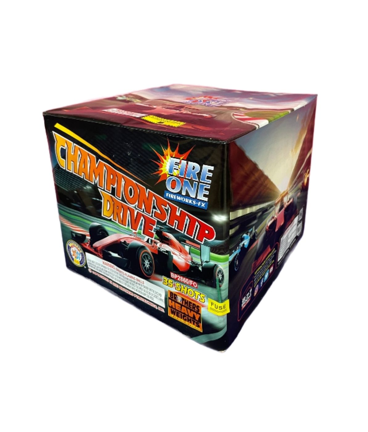 Get it I gear: First – brocade mines to red and green stars and then red stars to green stars. Second – five quickened shots of red stars. Third – five quickened shots of green stars. Fourth – brocade mines to red and green stars and then green stars to red stars. Fifth – five quickened shots of yellow stars. Sixth – five quickened shots of chrysanthemums. Finale – brocade mines to red and green stars and then crackling stars. 35 SHOTS