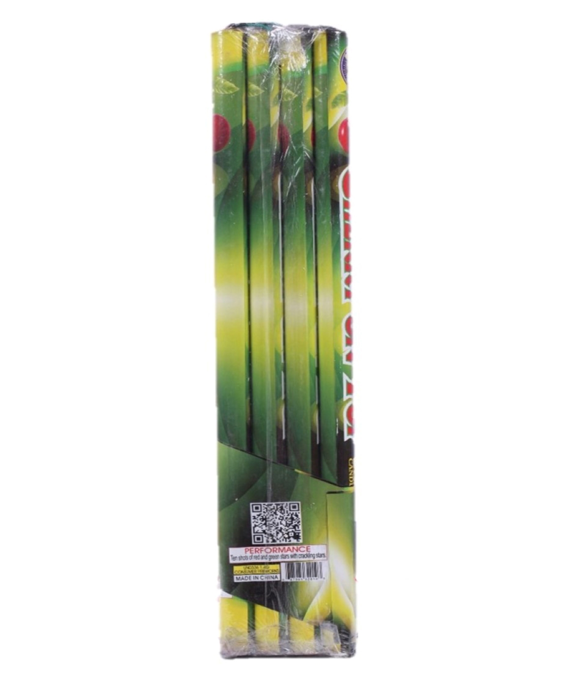 The Sweetest Show in the Sky! This 10-shot candle is a crowd favorite for its bright, high-contrast display. It launches a sequence of ten shots that burst into vivid cherry-red and emerald-green stars. Each color burst is accompanied by a sharp, rhythmic crackling star effect, creating a beautiful “glittering” look that fills the air in a timed, orderly fashion.