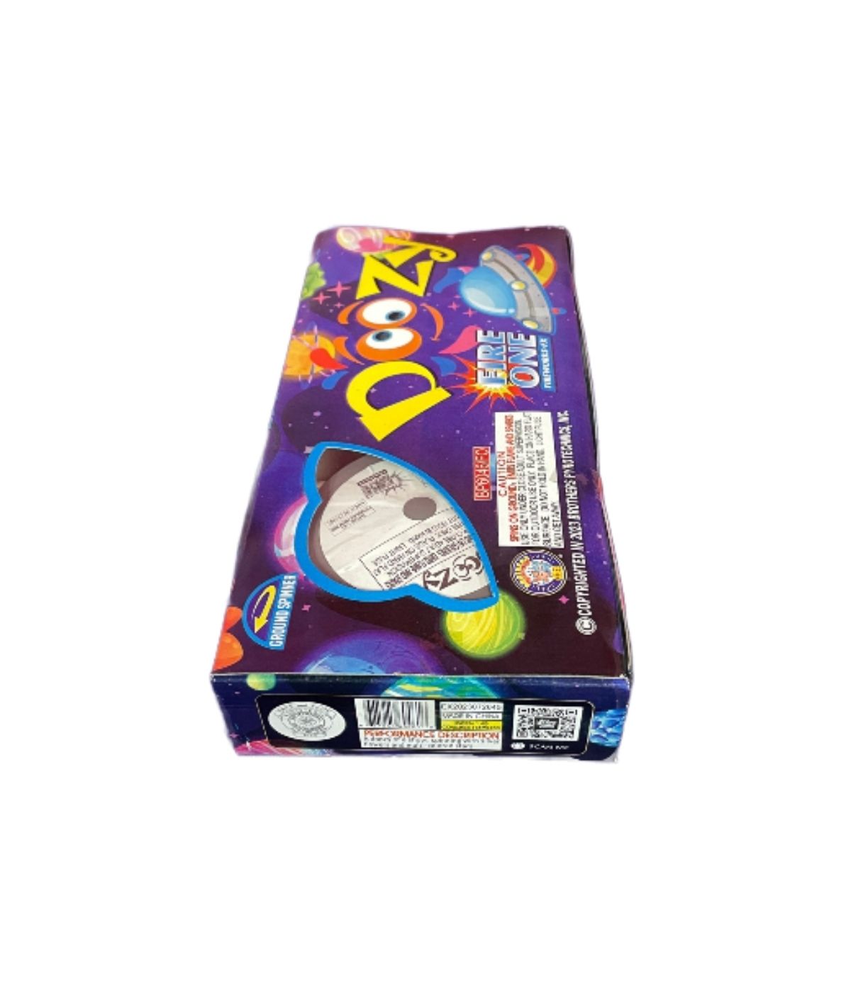 A doozy of a show: spinning with silver flowers and multi-colored stars.