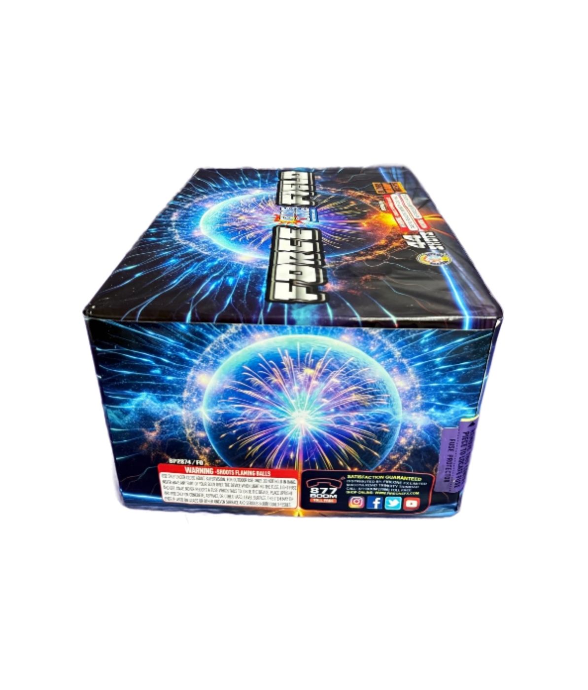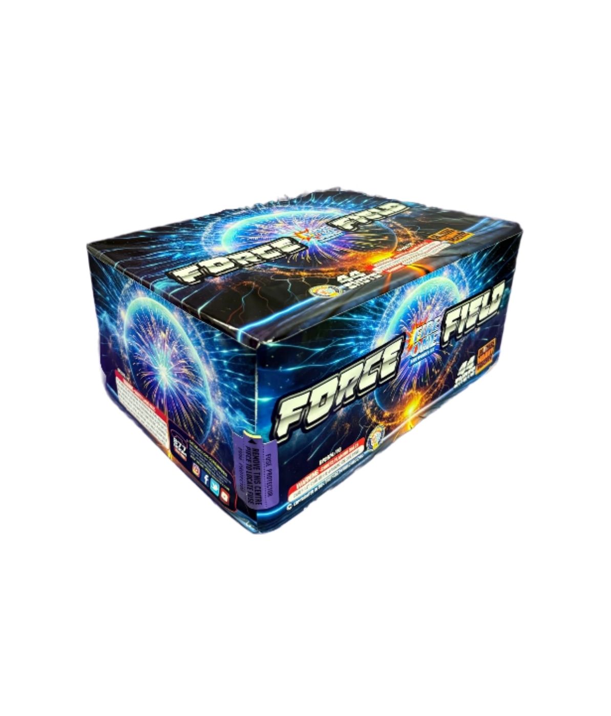 Create an impenetrable display with the Force Field! This 44-shot repeater uses a continuous stream of silver and red glitter effects, but the real power lies in the mid-show action. Look for the exciting dual effects of crackling mines bursting into red stars and the final volley of intense crackling tails to crackling flowers.