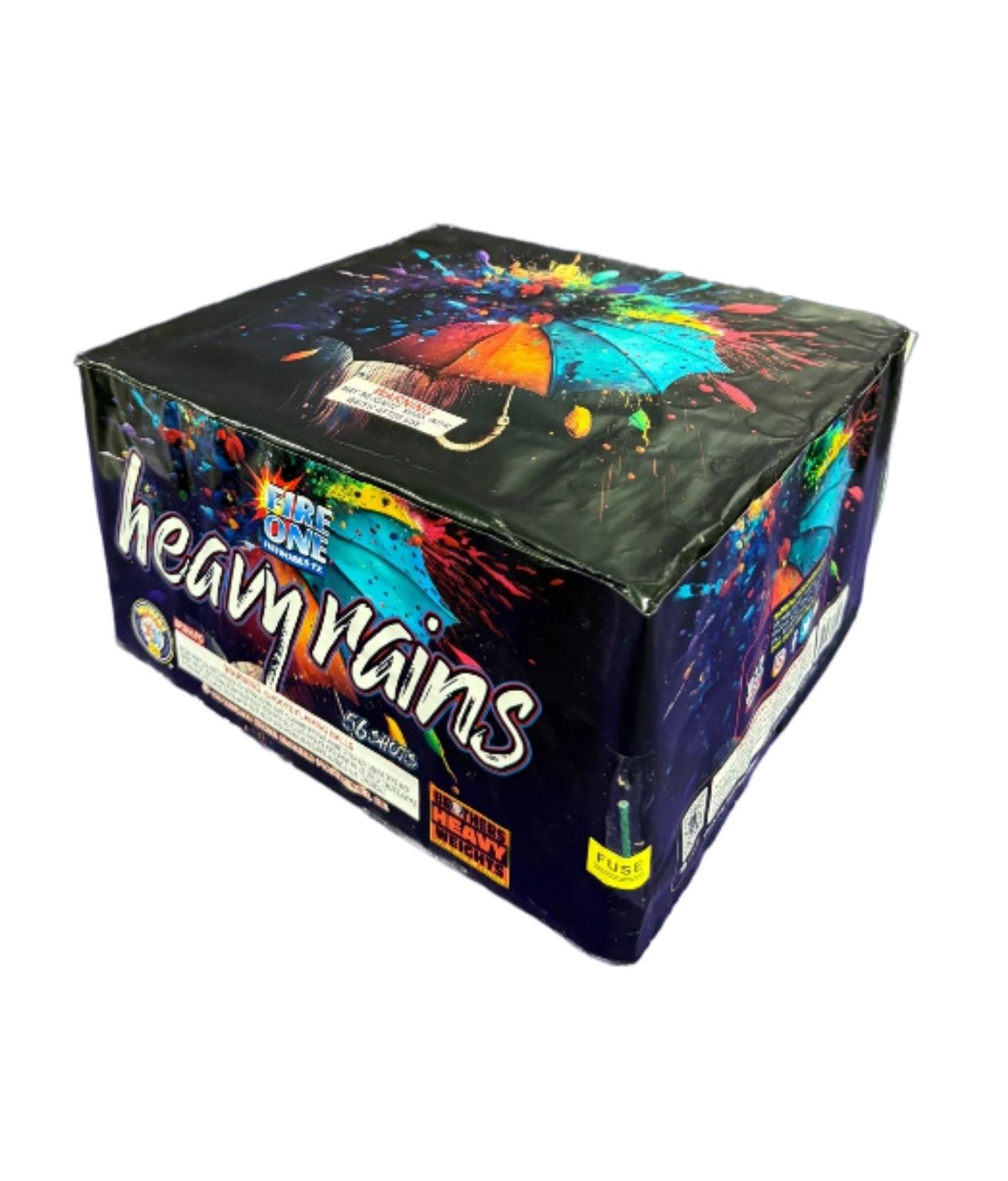The Heavy Rains 56 Shots is a massive 500-gram cake that delivers a high-impact, long-duration barrage of sound and light. It unleashes 56 shots that start with thunderous crackling mines from the ground, immediately followed by huge bursts of red and silver glitter, and vibrant blue stars. This firework doesn’t just sparkle; it roars!