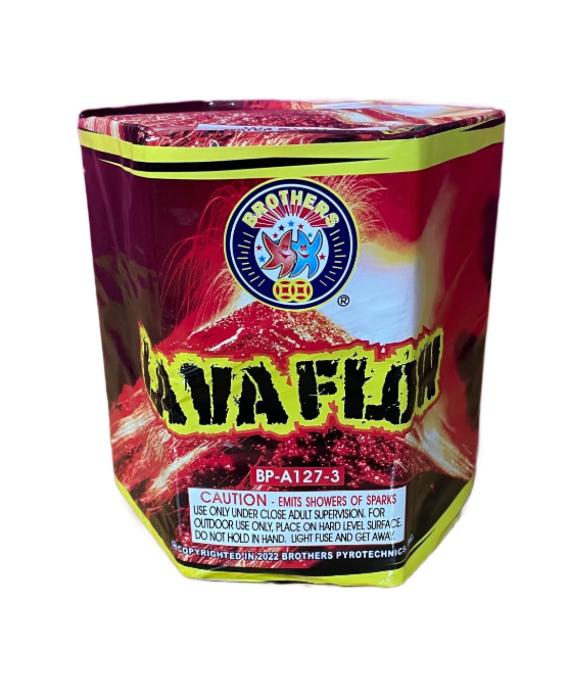 The Heat is On! Lavaflow is designed to simulate a volcanic eruption in your backyard. It starts with a low, glowing molten-red flame that slowly builds into a powerful pillar of gold and titanium sparks. As the “pressure” builds, it transitions into a high-intensity finale of vivid orange pearls and a heavy “crackling lava” effect.