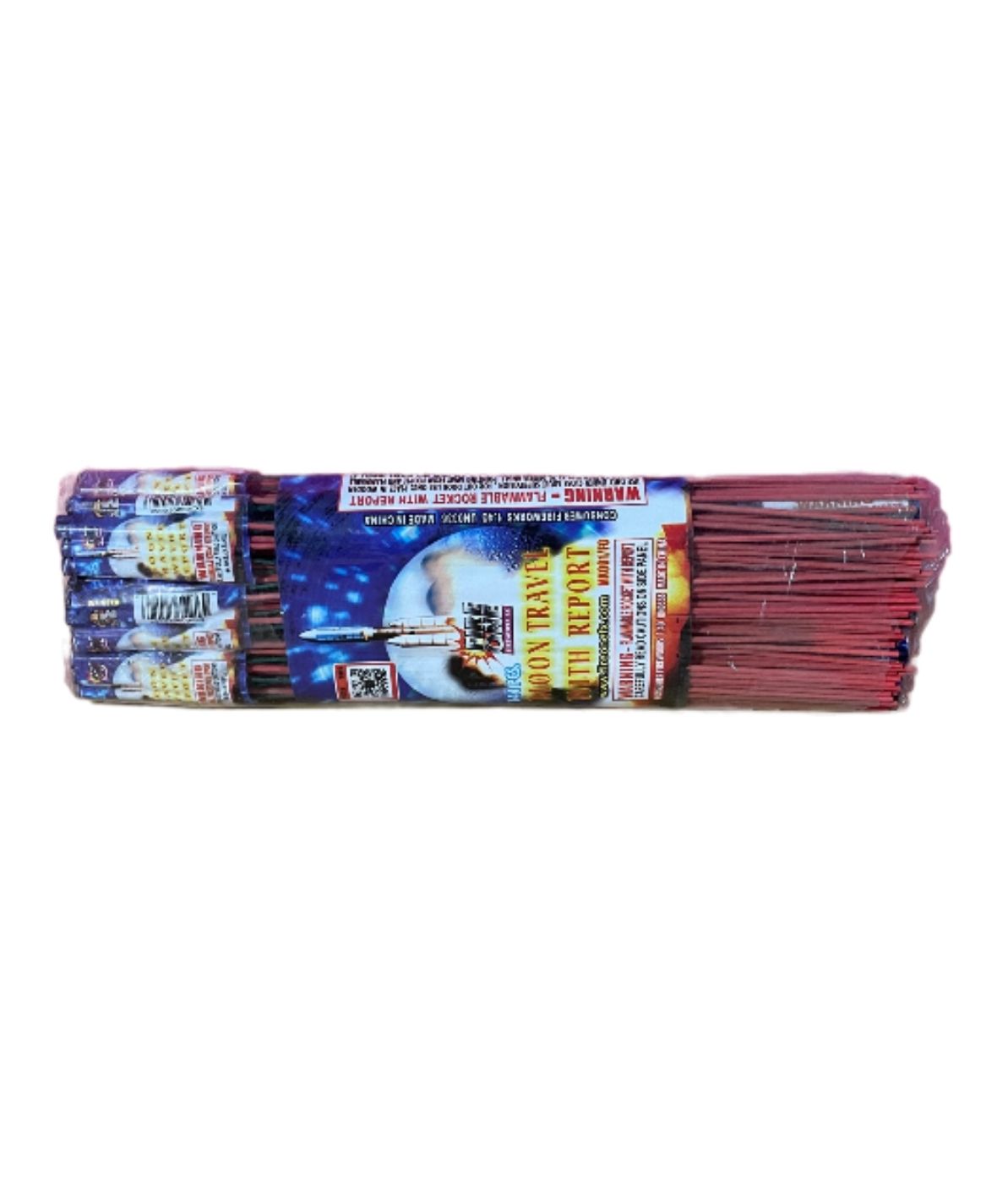 The Sky is the Limit! These are high-performance bottle rockets mounted on thin wooden guidance sticks. Upon lighting the fuse, they scream into the air with a high-pitched whistle before finishing with a sharp, echoing “report” (bang). They are designed for consistency, height, and reliability, making them perfect for those who want to “pepper” the sky with sound and motion.