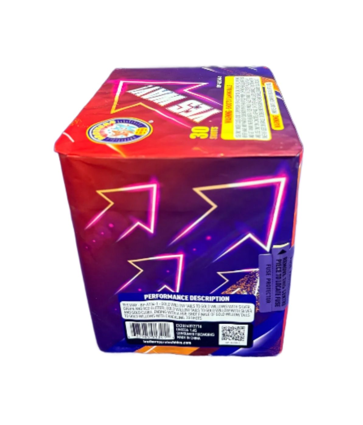 This 30-shot cake is a golden spectacle of light and sound. It launches gorgeous gold willow tails that burst into full gold willows shimmering with alternating silver, green, and red glitter. The cake builds to a massive, five-shot finale where the gold willows are amplified by intense crackling, guaranteeing a loud, high-impact finale!